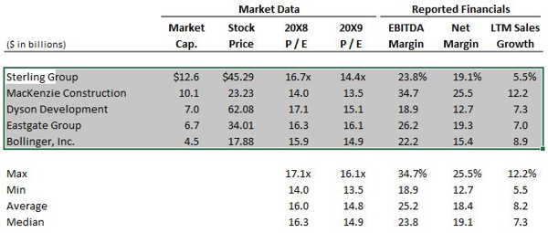 When performing a comparable companies/acquisitions analysis, it is customary to include summary statistics (e.g., min/max, mean, median) below the data set as shown in the image below. Macabacus automates this process, and can populate these statistics with the click of the button.